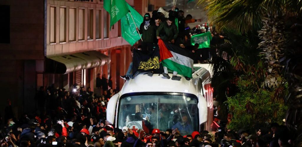 شهدت مدينة رام الله، اشتباكات بين قوات الاحتلال الإسرائيلي وعدد من الفلسطينيين بالتزامن مع الإفراج عن دفعات من الأسرى الفلسطينيين وفق صفقة تبادل الأسرى ضمن اتفاق وقف إطلاق النار.وأطلقت قوات الجيش الإسرائيلي قنابل الغاز المسيل للدموع تجاه الصحفيين المتواجدين في محيط بيتونيا غرب رام الله، وذلك قبيل بدء عملية الإفراج عن الأسرى الفلسطينيين، فيما تم توثيق إطلاق قنابل دخان نحو الصحفيين بالقرب من سجن عوفر العسكري.وتأتي هذه التطورات، فيما تستعد مدن وبلدات الضفة الغربية المحتلة اليوم لاستقبال 250 أسيراً من ذوي الأحكام العالية، في إطار صفقة “طوفان الأقصى” لتبادل الأسرى، والتي بدأ تنفيذها بالتزامن مع دخول اتفاق وقف إطلاق النار في غزة حيّز التنفيذ.